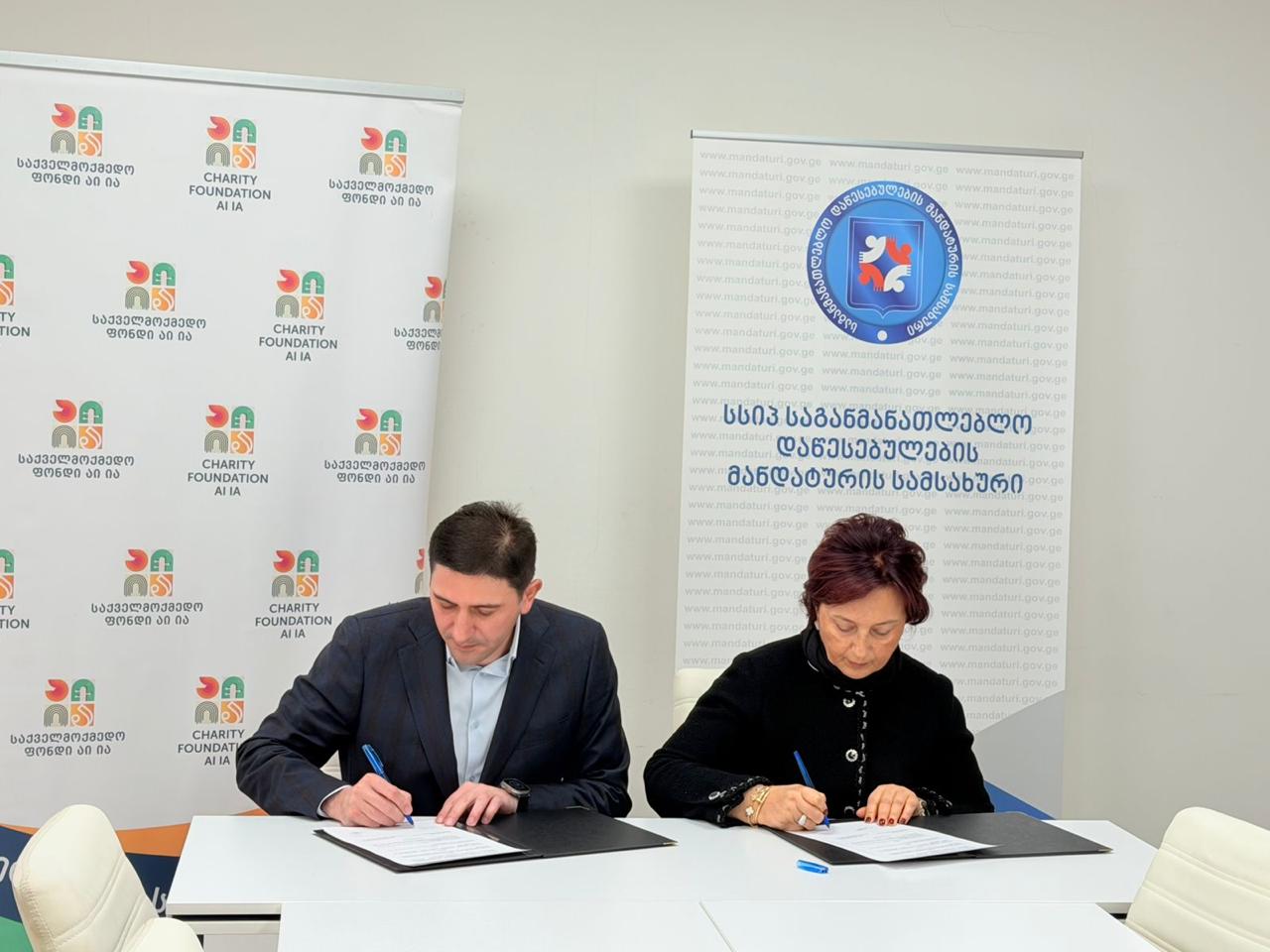 მემორანდუმს ეფექტიანი თანამშრომლობის მიზნით, ხელი მოაწერეს საგანმანათლებლო დაწესებულების მანდატურის სამსახურის უფროსმა პავლე მაჭარაშვილმა და საქველმოქმედო ფონდ „აი იას“ დირექტორმა ნანა გოთუამ.